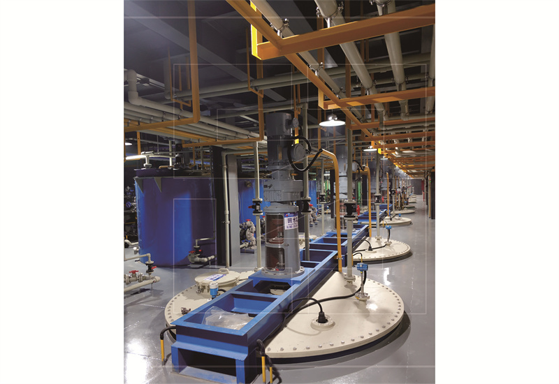 近幾年在得益于新能源行業的飛速發展,公司已有六條螺旋基礎生產線,產品主要輻射中部地區、西部地區,年產能可達3000多臺PPH、HDPE罐,200多套尾氣處理塔,出貨量處于同行業中比較強的地位,公司儲罐采用一次性成型工藝制作,單體模具尺寸可達4200*9500mm,體積達130m³,配置下人孔自動焊接機,設備使用安全,無滲漏風險,主要應用液鎳,液鈷,混合鹽液、液堿、氨水、硫酸等介質的存放。